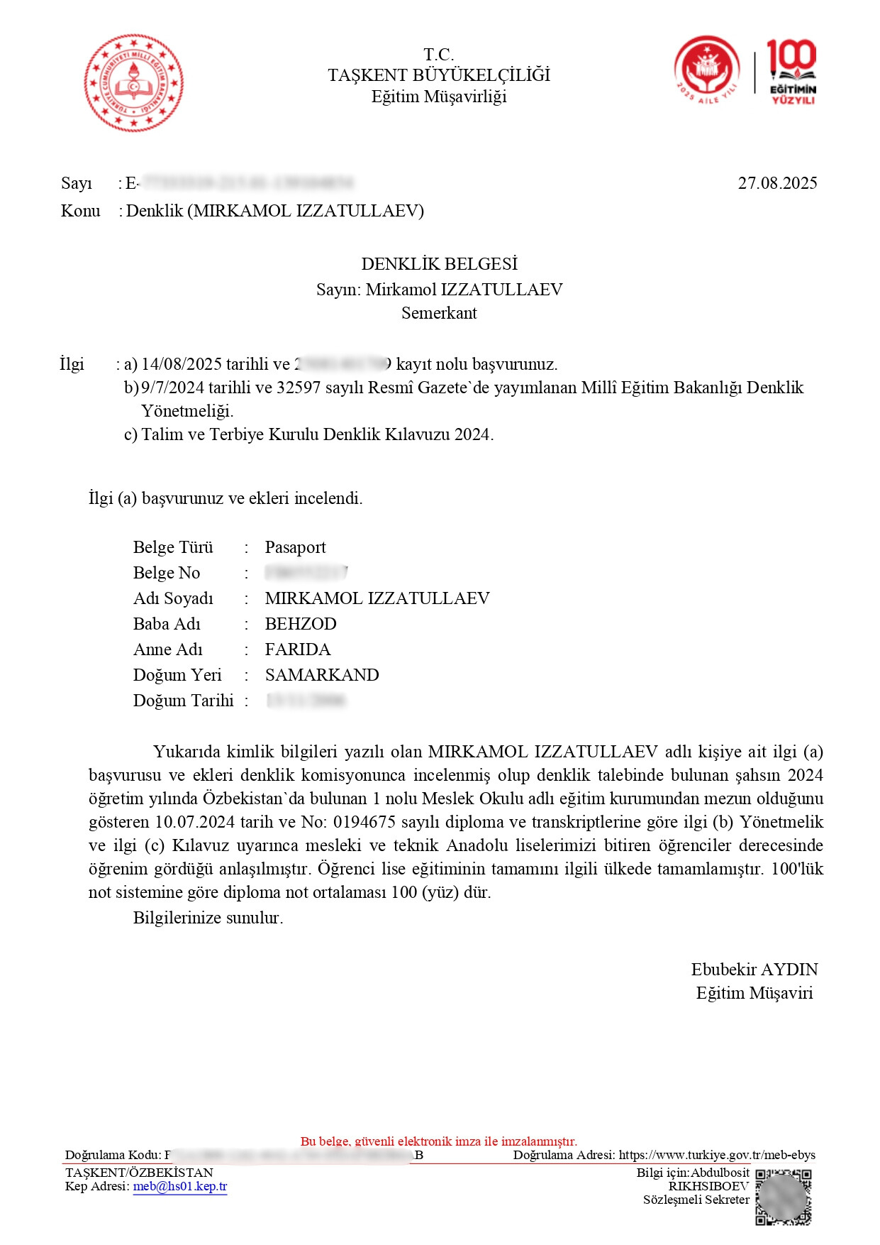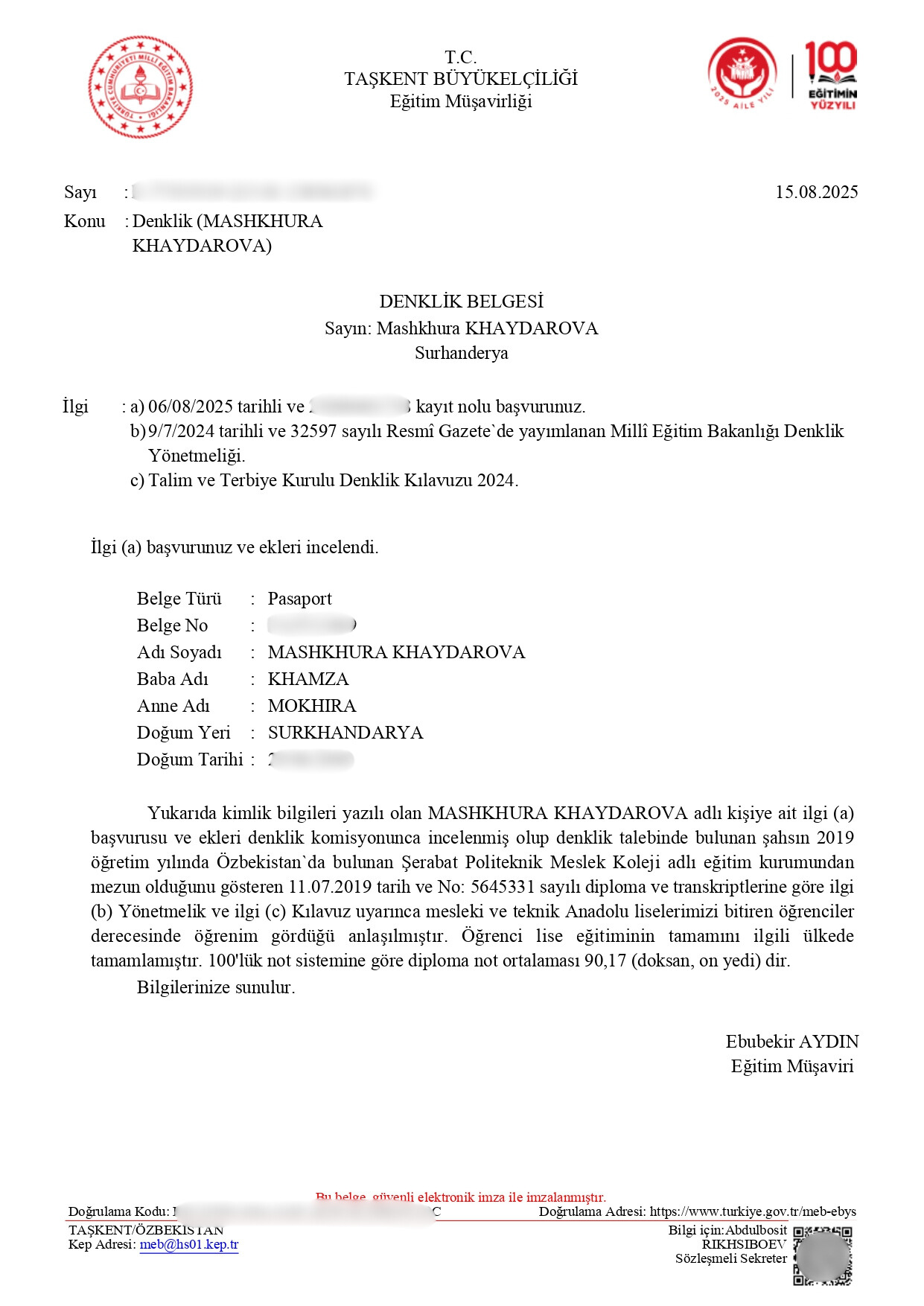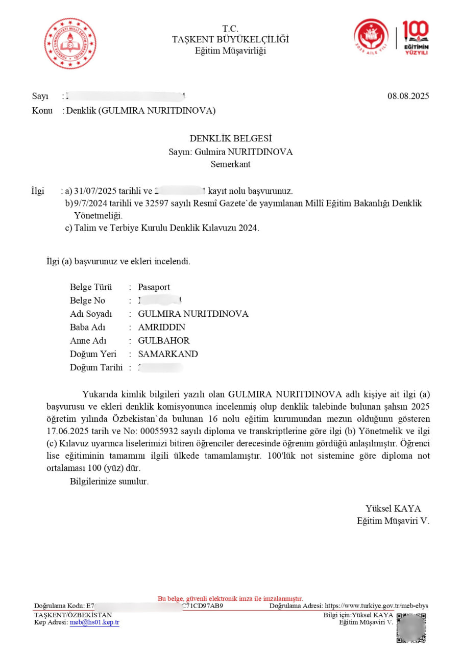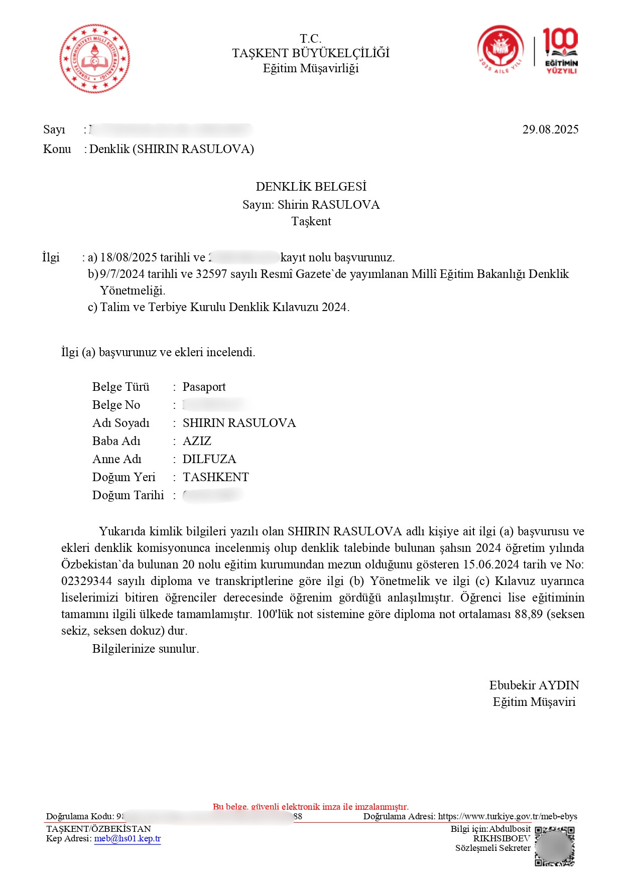 Oʻzbekiston fuqarolari uchun Turkiya Denklik Belgesi: Muhim jihatlar